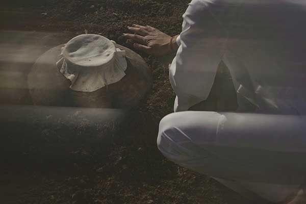 At the dawn hours of Brahma Muharat, when Oxygen is at its highest and air it’s most pure – freshly plucked, lifting and firming fruits and herbs are left to soak inside clay pots buried under the ground to ferment.